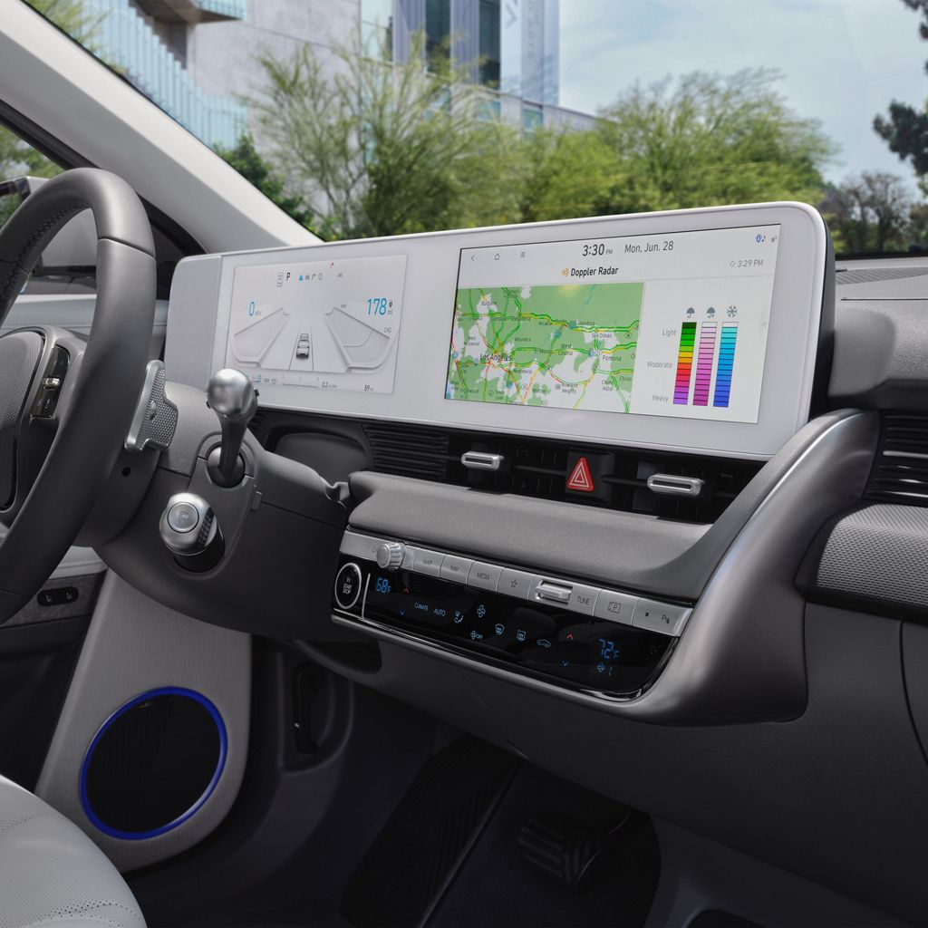 The Hyundai IONIQ 5’s interior offers an expansive and comfortable environment. With 133.7 cubic feet of total interior volume and 59.3 cubic feet of cargo space across all trims, it provides ample space for passengers and their luggage. While the SE Standard Range and SE trims lack dual power front seats and a heated steering wheel, these features are available in the N Line and Limited trims, ensuring added comfort. The Limited trim enhances drivers’ convenience with an integrated garage door opener.