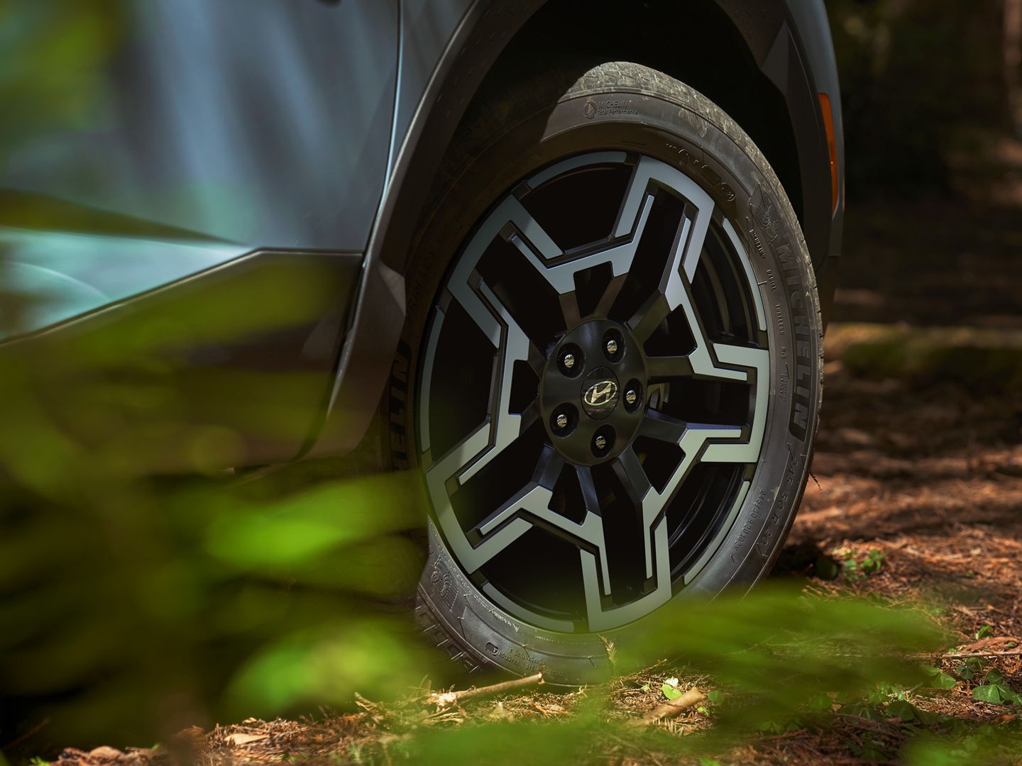 The 2025 Hyundai Santa Cruz is available in 5 trims: SE, SEL, SEL Activity, XRT, and Limited. The SE trim starts with 18-inch alloy wheels, LED headlights, LED Daytime Running Lights, and dual side-bed storage compartments. The SEL adds side mirror-mounted LED turn signal indicators. The SEL Activity upgrades to 20-inch alloy wheels and includes LED bed lighting with an adjustable rail-mounted cargo system. The off-road focused XRT features 18-inch wrench-inspired wheels with all-terrain tires, specialized front and rear bumper fascia, increased approach angle, and front tow hooks. The Limited tops the range with 20-inch alloy wheels, dark chrome front grille with integrated LED lighting, power sunroof, and remote-open tailgate.