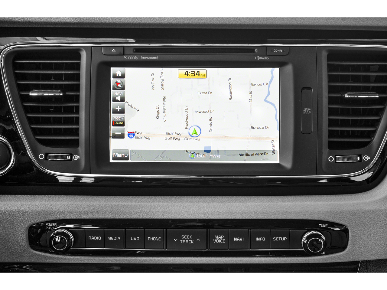 - Radio: AM/FM/CD/MP3/SiriusXM Audio System -inc: navigation VIT 4.0, 8 Infinity speakers (including subwoofer and external amplifier), Bluetooth®, USB/auxiliary input jacks, UVO2 telematics and 4.3" touchscreen