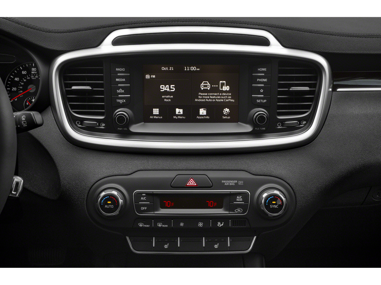 - Radio: UVO Play w/AM/FM/MP3 -inc: 7" touch-screen audio display system, Android Auto, Apple CarPlay, integrated rear-camera-display, 6-speakers including door-mounted tweeters, USB/auxiliary input jacks and Bluetooth® wireless technology