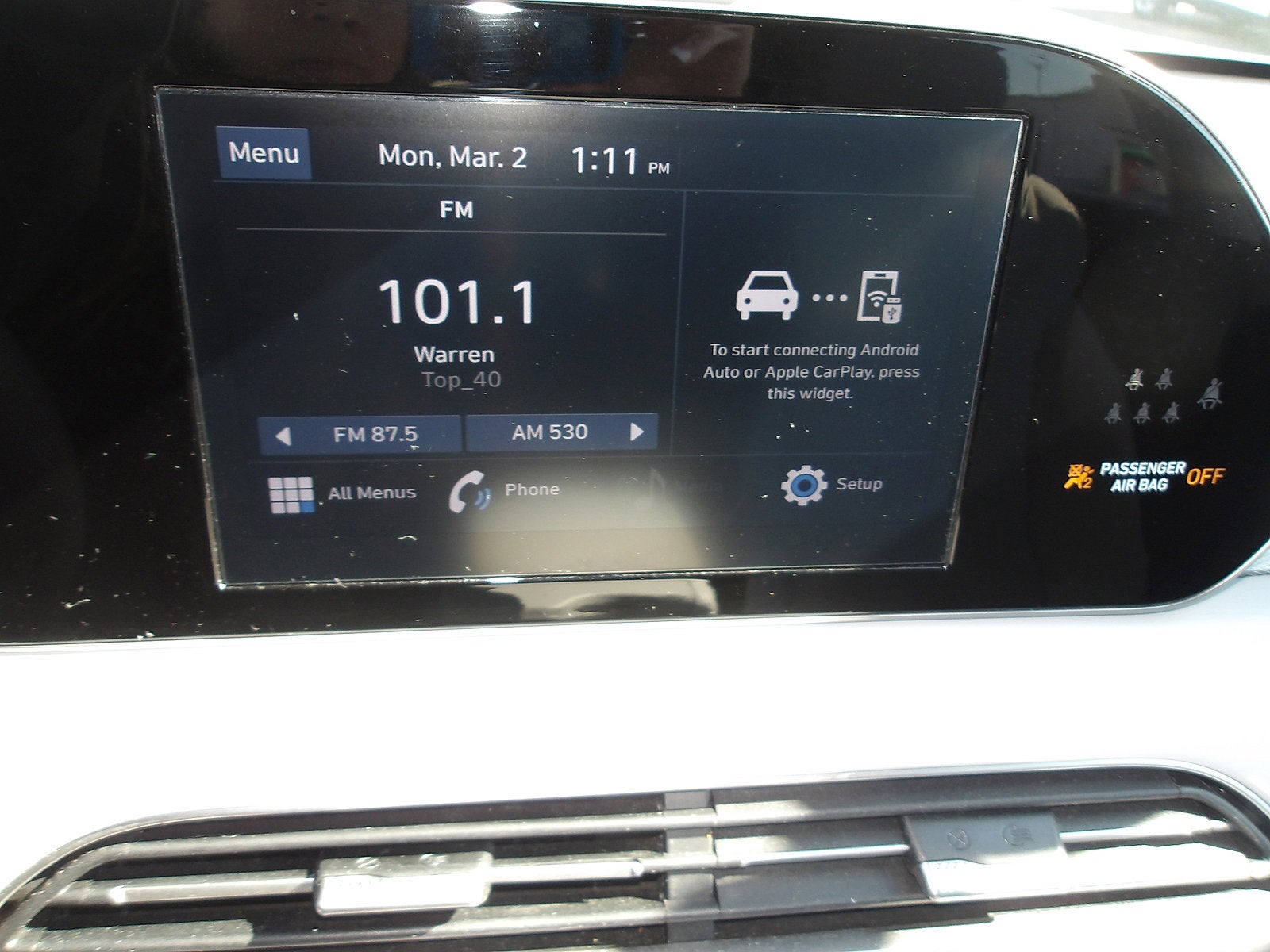 - Radio: AM/FM/MP3 Display Audio -inc: 8" display screen, USB and auxiliary input jacks, Android Auto, Apple CarPlay, wireless smartphone connection, HD Radio, rear seat quiet mode, Bluetooth® hands-free w/wireless audio streaming and steering wheel audio controls