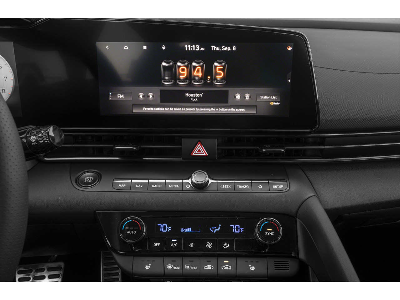 - Radio: AM/FM/HD/SiriusXM Display Audio -inc: 10.25" high resolution touchscreen display, navigation, SirusXM data services: NavTraffic, NavWeather, sports and stocks w/3-month trial, 6 speakers, Blue Link connected car system, wired Apple CarPlay and Android Auto, Bluetooth® hands-free phone system w/voice recognition, USB ports, dynamic voice recognition and speed-sensitive automatic volume control